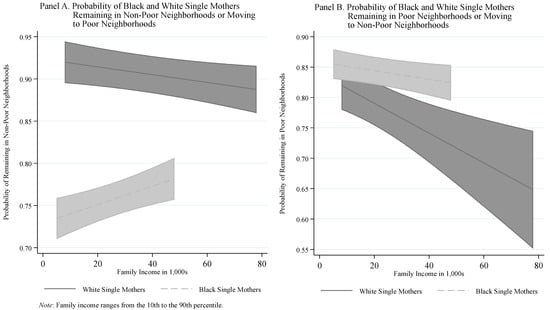 - Does the probability of remaining in non-poor or poor neighborhoods for Black and White single mothers vary by economic resources?
