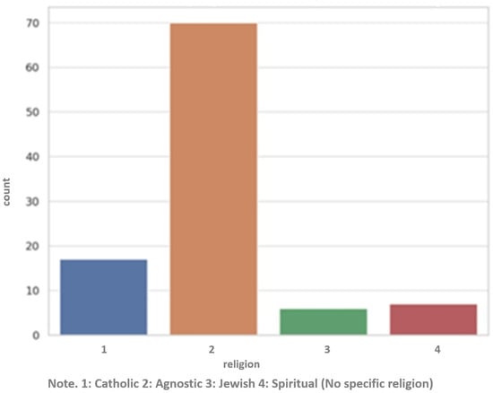 The religious representation of the characters, depicted in Figure 4, shows a predominance of agnosticism and Catholicism, with an average score of 6.18 on a scale from 1 to 9. The “Catholic” category is underrepresented compared to national data.