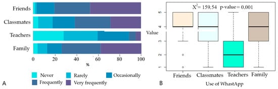 Finally, to evaluate students’ preference for WhatsApp compared to other academic communication methods, a mean comparison analysis was conducted using the Kruskal–Wallis test, considering a significance level of p < 0.05. Chi-square (X²) values and degrees of freedom (df) were calculated to determine differences between WhatsApp, email, and tutoring sessions.