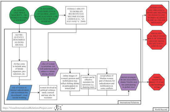 Figure 1, Figure 2 and Figure 3 show clearly that the pre-existing environment impacts the role that women play in terrorist groups—as suicide bombers or otherwise. Another theme that connects all of the diagrams is the presence of patriarchal structures within which women engage as victims or agents of the groups.