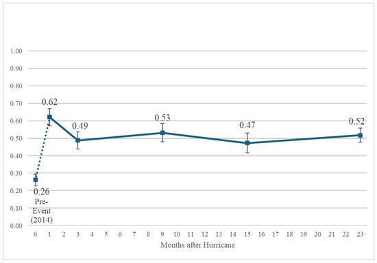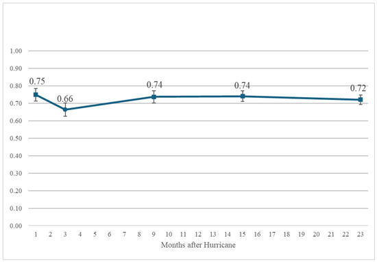 When measured again three months after the storm (in December 2019), however, average support had markedly declined, with fewer than half of respondents saying that safer construction practices should be the priority. Levels of support for DRR may have then ticked up and plateaued in subsequent months, though these averages—as measured at 9, 15 and 23 months after the hurricane—have overlapping confidence intervals, i.e., they do not differ significantly.