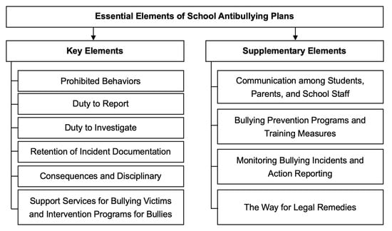 In addressing the issue of balancing school responsibilities, the United States, Japan, and the United Kingdom, which represent common law and civil law systems, have adopted different legislative models. The specialized antibullying legislation in the United States includes state bullying law, state model bullying policies, and school district bullying policies (Rose and Pierce 2012). When formulating antibullying legislation, individual states typically reference the predominant characteristics of school bullying incidents within their jurisdictions. Regarding the issue of school liability, the U.S. has employed an indirect approach in its antibullying legislation, avoiding direct specification of schools’ duties in state bullying laws. Instead, it requires school districts to develop antibullying policies, granting schools the authority to impose disciplinary measures (Gallagher 2002). The law indirectly forces schools to take antibullying actions while also outlining the core elements and minimum requirements of state model bullying policies and school district bullying policies for schools to reference. In general, school district bullying policies are more comprehensive than state model bullying policies. The district policies provide the most direct requirements and guidance for schools to implement bullying strategies. Some districts have a greater degree of discretion when formulating their policies. Another reason for urging public school administrators in the United States to establish antibullying policies is the gradual judicial recognition of schools’ roles and responsibilities through court precedents, compelling schools to develop policies and procedures to address bullying (J. Lin 2017). When lawsuits against schools arise from bullying incidents, courts will evaluate whether the school has fulfilled its obligations by examining the adequacy of its antibullying policies.