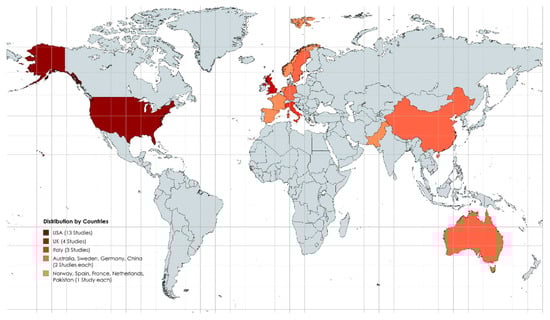 Geographical distribution (by countries) of reviewed studies on climate misinformation, disinformation, and epistemic harm.