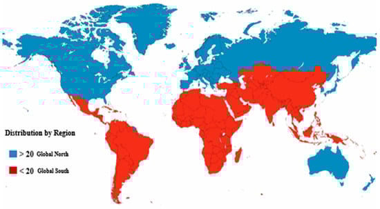Figure 3 and Figure 4 illustrate a stark imbalance in the geographical focus of climate change disinformation research from the 38 studies included in this meta-synthesis. While some studies span multiple regions or present global perspectives, the distribution remains heavily skewed toward the Global North. Specifically, nearly 87% (33 out of 38) of the studies are centered on contexts within the Global North—particularly North America, Western Europe, and parts of Oceania—while only 13% (5 out of 38) identify with or directly examine the Global South. This unequal distribution shows a significant research gap in how climate change disinformation is conceptualized, studied, and addressed across diverse sociopolitical and media ecosystems. The underrepresentation of the Global South in this field can be attributed to several factors: limited research funding, infrastructural and technological disparities, lower academic publishing access, and the dominance of English-language journals that often prioritize Global North contexts. Additionally, climate change discourse in the Global South may be more closely tied to issues of survival, adaptation, and justice, rather than to epistemic or communicative disinformation frameworks, which are prevalent in the North.