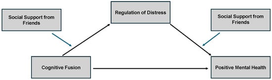 Moderated mediation model: cognitive fusion, regulation of distress, and positive mental health using support from friends (Model 14).
