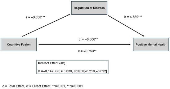 Simple mediation model: Effects of cognitive fusion on positive mental health through regulation of distress (Model 4).