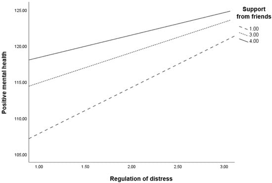 Conditional effects of support from friends on the relationship between regulation of distress and positive mental health.