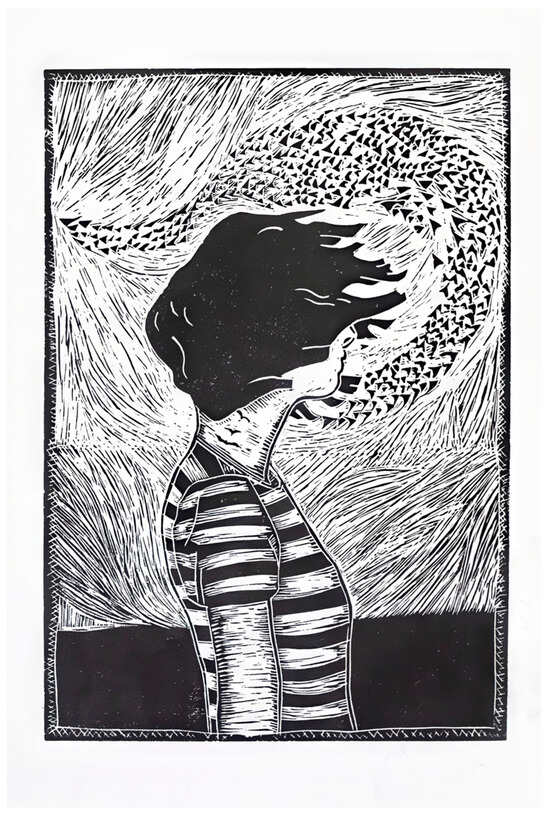 A note about the artwork used in the cover design (Figure 1 below): Murmuring is a monochrome linocut print created for this Issue by Melissa Telford, an artist living and creating on Dja Dja Wurrung land. The limited colour palette explores contrasting views and the spaces and experiences that sit somewhere in between. The partially obscured face and the (in)visibility of the wind convey what is seen and unseen, while the movement of birds speaks to the ever-changing emotional landscape that traverses a line between turmoil and healing. Although sometimes hesitant to call herself an artist, art has remained a constant in Melissa’s life to explore, understand, heal and connect. As an art therapist, she is drawn to the power of art to create space beyond the limitations of words. As an introvert, she connects with the power of art to amplify a quiet or overlooked voice, a small detail, or a meaning that may not be fully formed or understood.