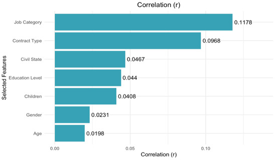 To further explore the strength and direction of the relationship between the variables relating to personal and contractual characteristics of the respondents and telework harassment, a correlation analysis was implemented using WEKA. No cut-off point was applied when including features into the Random Forest model.