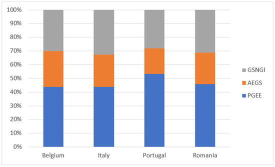 The results indicate that, at the aggregate level, both context and experience show weak but statistically significant associations with PGEE, AEGSE, and GSNGI. However, when disaggregated by country, some differences emerge. In Belgium, the correlations between context and PGEE/GSNGI, as well as between experience and AEGSE, are more consistent and statistically significant. In Italy, both context and experience display moderate associations with GSE and, to some extent, GSNGI. By contrast, in Portugal and Romania, the relationships are weaker and, in some cases, negative or non-significant.
