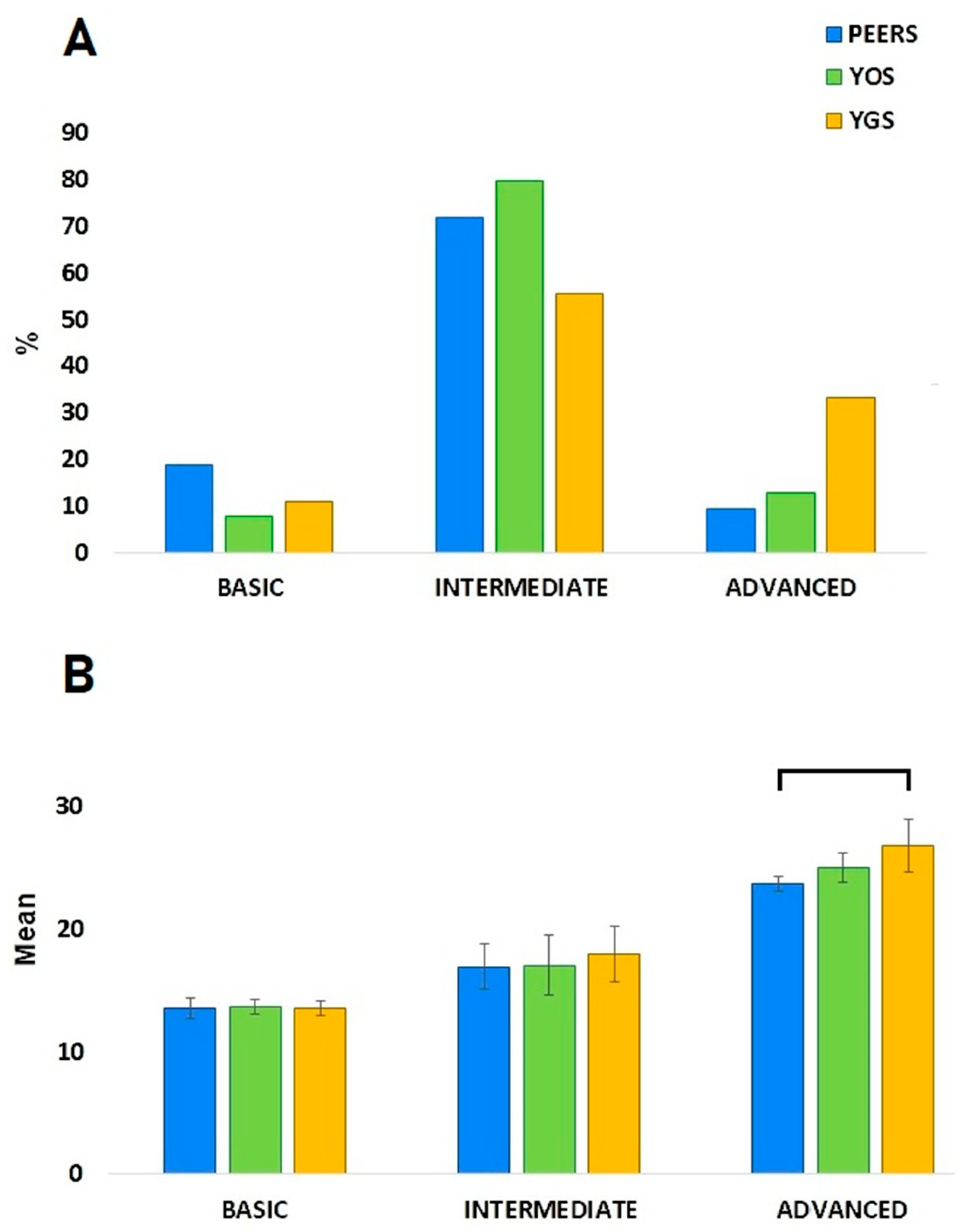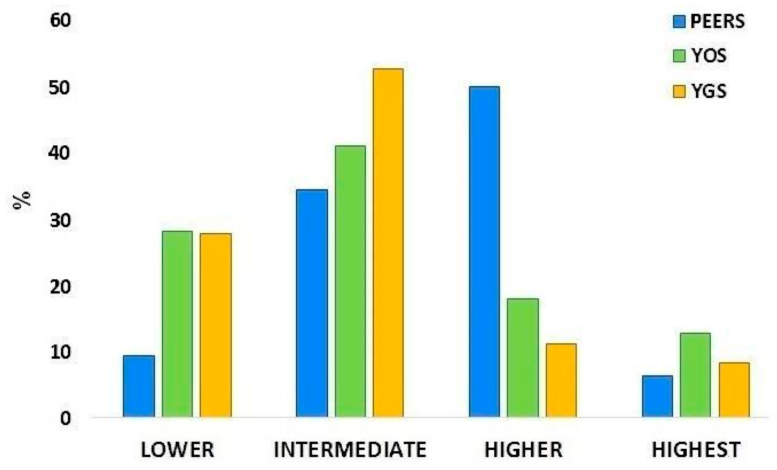 | PEERS n = 32 | YOS n = 39 | YGS n = 36 | PEERS vs. YOS vs. YGS | PEERS vs. YOS | PEERS vs. YGS | YOS vs. YGS | |||||