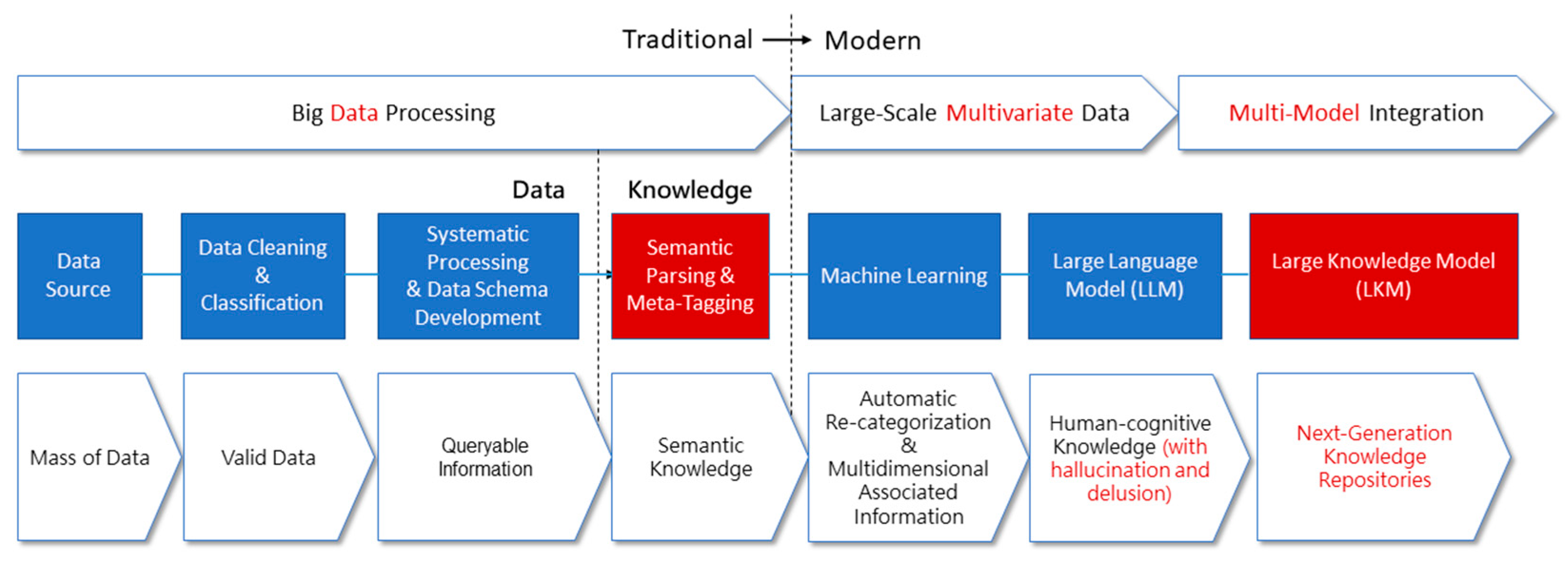 Figure 4 with additional elaboration, the hollow text boxes positioned above and below the solid boxes illustrate representative data or technical examples associated with each stage.
