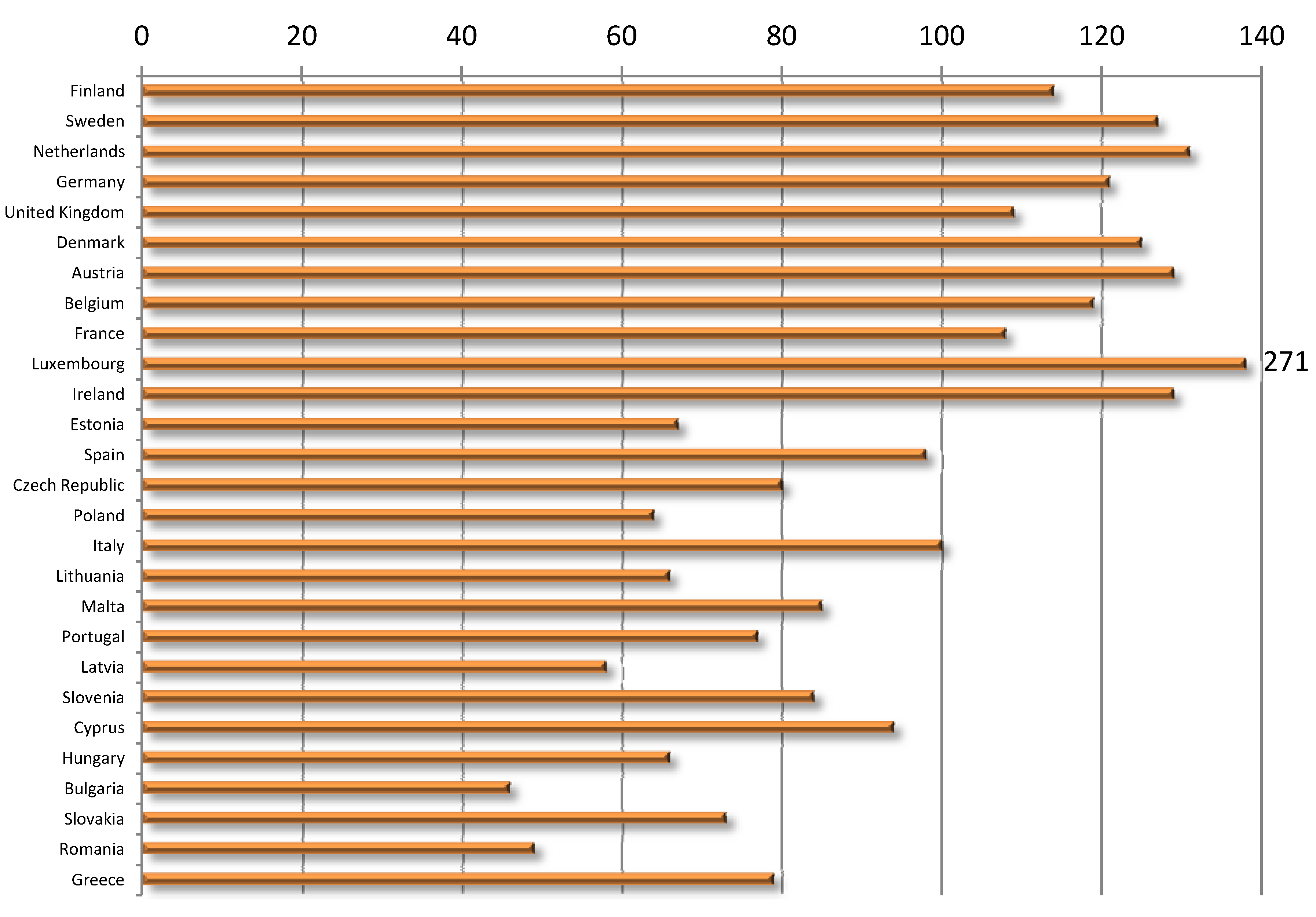 | Austria | 132 | 132 | 126 | 127 | 128 | 128 | 125 | 126 | 124 | 124 | 125 | 127 | 129 |