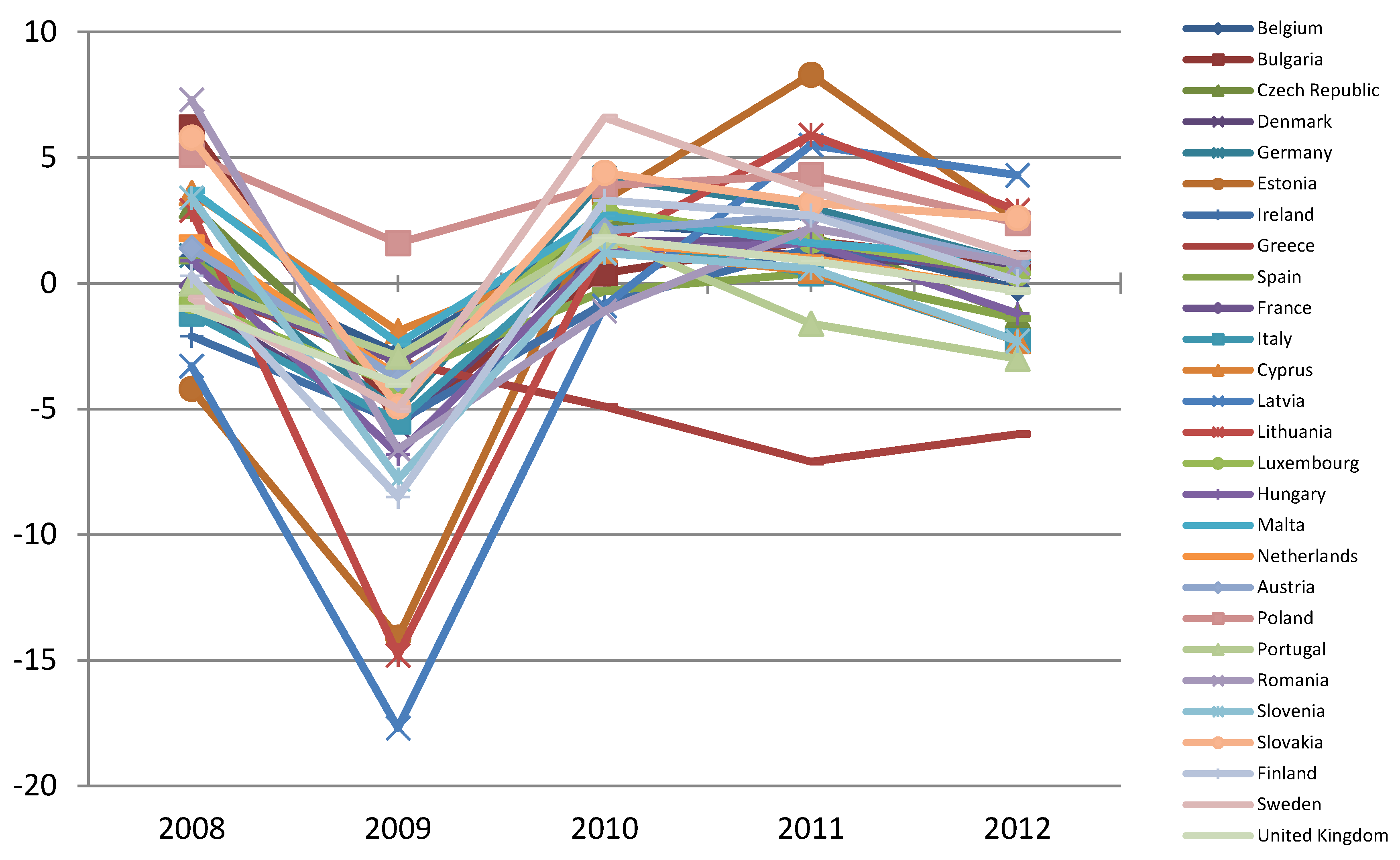 | Latvia | −3,3 | −17,7 | −0,9 | 5,5 | 4,3 |