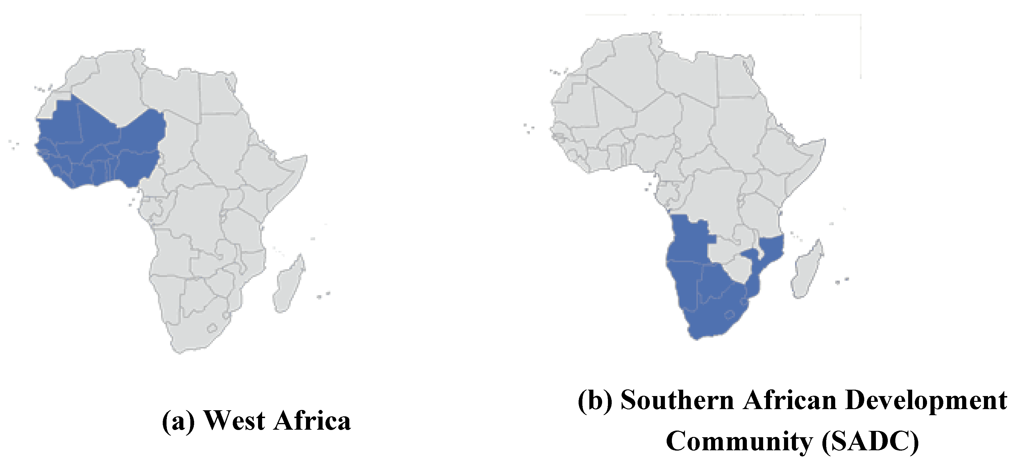 The population of our study consists of all 48 Sub-Saharan African state signatories of the Cotonou Partnership Agreement (CPA) with the EU. Our population represents all five regions of Sub-Saharan Africa: West Africa, Central Africa, Eastern and Southern Africa (ESA), the East African Community (EAC) and the Southern Africa Development Community (SADC) (Figure 1). This is a longitudinal research study, since it is repeated with the same sample over time with the purpose of identifying and measuring change in the dependent variable “aid flows”.