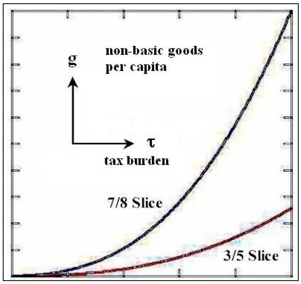 In accordance with the delivery constraint, the size of the wealth-pie equals . Consequently, the tax rate is given by: