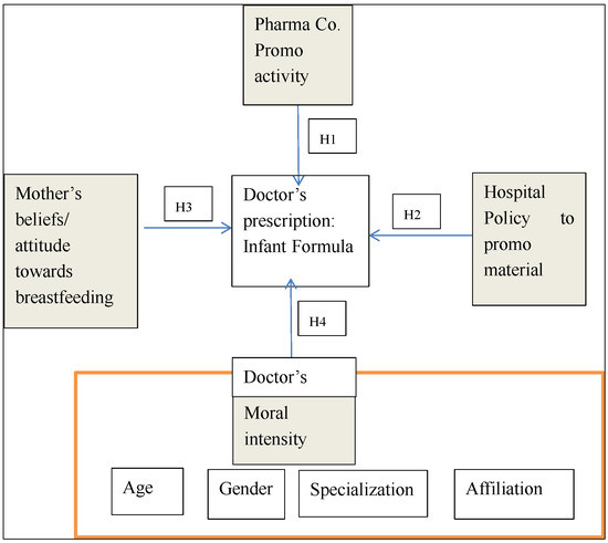 Several research articles and letters in the Lancet’s Series on breastfeeding [9,10], emphasize the benefits of global breastfeeding [11], and acknowledge more is needed to achieve the target of 50% exclusive breastfeeding. Some suggestions include for instance, strengthening legal protection to effectively implement, enforce and monitor existing laws supporting the International Code of Marketing of Breastmilk Substitutes1 [13], providing financial incentives [14], and supporting mothers in early breastfeeding [15]. Despite efforts, little progress has been made to combat the low exclusive breastfeeding rate. Various factors have been proposed and empirically tested [16,17,18] and this study offers an additional perspective by investigating, in Kuwait, doctors’ prescription of infant formula to mothers who can breastfeed2. More importantly, it aims to investigate if this practice is perceived as morally intense (i.e., as an ethical one) and if so, its impact on the prescription rate. The suggestion that doctors’ prescription or advice to mothers to complement or substitute breastmilk for infant formula can be seen as a moral issue is not far-fetched. For example, during the implementation of the breastfeeding policy in Nova Scotia, Canada, physicians were reported to be particularly challenging in sessions to educate them on the International Code of Marketing of Breast-milk substitute (referred to as the Code), and still accepted free formula and family care items with formula company advertisements on them ([19], p. 1314). Recent statistics show a 41% decline in the distribution of infant formula discharge packs in general hospitals and 91% in teaching hospitals in the US. Some attribute this trend to “ethical conflicts of interest”, and to a period “when the medical profession was critically evaluating the impact of commercial influences on professionalism and scientific integrity” ([20], p. 1064). That is, doctors and nurses in the United States were influencing mothers’ infant feeding choices. Ultimately, health care providers were doing the work of the medical representatives, by handing out samples to mothers, thus ‘helping dismantle breastfeeding as the cultural norm in the United States’ ([21], p. 345).