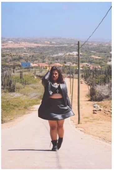 This study also revealed some departures from previous literature on fat Latina women. According to previous literature (e.g., [22,29]), fat Latina women are more likely to be ashamed of fat bodies and prefer an assimilationist approach. However, I was surprised and encouraged to find that fat Latina women also participate in discourse on fat bodies of color. Whether this shift in participation is in response to less communal support offline or an indication of more familial and communal support offline cannot be concretely determined from analysis of images and text alone, but my findings suggest that fat Latina women are “fat brown & down: down for the fat poc revolution” (Vanessa, participant).