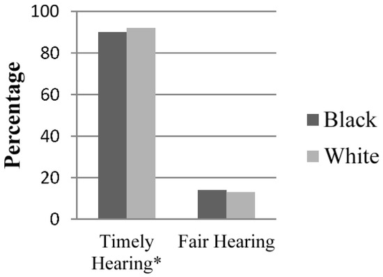 Race had an interesting impact on appellate outcomes. Black appellants were less likely to receive timely hearings than whites, but race had no significance on determining if they received a fair outcome. Appellants from counties that had higher patterns of racially polarized voting were slightly (p < 0.10) more likely to receive timely hearings compared to other beneficiaries. However, they were also more likely to receive unfair outcomes compared to those who resided in counties where blacks and whites had similar voting patterns.