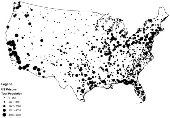 Contemporaneously, yet distinct from the increase in the “supply” of prisoners, a confluence of political, cultural, and economic factors also drive prison “demand.” The five-fold increase in the imprisonment rate has been accompanied by a tripling in the number of prisons. Although mass imprisonment and the prison boom occurred simultaneously, there is considerable variation in the number of prisons built in each state and region during this massive expansion of the criminal justice system over the past 45 years. Thus, prison proliferation is not simply a function of mass imprisonment. For example, Illinois, Georgia, and Ohio have roughly 50,000 inmates each in state prison, but each respective state houses prisoners in a number of different facilities (from Illinois’s 55 prisons to Georgia’s 82 prisons). During this era of mass imprisonment, the United States has leapt ahead of all developed nations in the per capita number of citizens it incarcerates [,,,]. In fact, Louisiana has become the world leader in incarcerating its residents, with over 35,000 citizens annually or roughly 1600 per 100,000 persons serving time []. This rate of imprisonment is especially high given that Louisiana has only 16 prisons housing over 41,000 prisoners annually. In comparison, Texas has 121 prison facilities for the more than 100,000 inmates it incarcerates annually. This means that Texas has an average of 826 inmates per facility, whereas Louisiana has an average of 2500 per prison facility. This vast difference in the respective number of prisons and prisoners per facility demonstrates the variability of prison-building across states and within regions. This also suggests that the same logic driving mass imprisonment may not apply to prison proliferation as the two have distinctly different functions.