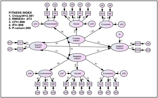 The main constructs—namely, positive perception, negative perception and tourism impact—were perceived to have a significant effect on support for tourism development. Thus, one can conclude that the residents in Terengganu states believe that tourism development has the possibility of yielding positive and negative effects on national development in terms of the three dimensions environment, socio-cultural and economics as addressed in Table 3. This finding would be an important contribution to our discussion regarding the positive and negative perception that exists among the residents here. Those convinced by the benefits of tourism development will continue to support government plans to devote attention to tourist travel, due to their positive thinking. However, negative people will refute the positive growth and assume that the plan might cause trouble in their life. By comparing the estimation between positive and negative perceptions towards economics, the environment, and socio-cultural factors, we determined that most of the residents believe that the enhancement of tourism development will benefit them, thus leading them to think positively regarding tourism.