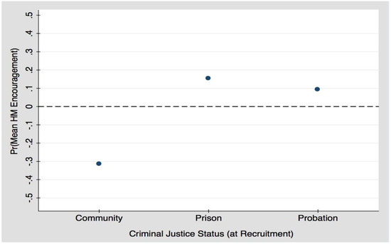 Predicted probability of encouragement from HM ties by criminal justice status.