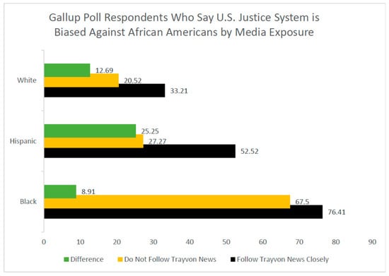 The killing of Trayvon Martin was a salient criminological event in that it captured the attention of the nation. President Obama noted that if he had a son, he would look like Trayvon. Examination of Gallup polls conducted in the immediate aftermath of the shooting revealed that majority of Americans (66%) were following news about the shooting very closely or somewhat closely (Gabbidon and Jordan 2013). Moreover, the not-guilty verdict on 13 July 2013 was followed by subsequent debates on major television networks regarding whether the jury had reached the correct decision and whether blacks are treated equitably and unbiasedly by our court system. Most Americans (54.3%) argued that the verdict was just and that Zimmerman acted in self-defense. Others viewed the killing and verdict as quintessential examples of racism and injustice masquerading under the seemingly innocuous banner of self-defense and stand-your-ground laws. For these Americans, the shooting of Martin was an unprovoked action motivated by racial profiling (Bloom 2014). Both perspectives were widely disseminated and debated across various media outlets for months and public opinion on the case was largely divided along racial lines (Unah and Wright 2015). This is where we think the media might have played a role in shifting and fermenting individual perceptions of the case.1