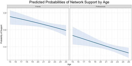 Predicted probabilities of network support by age.
