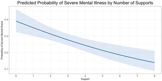 Predicted probability of severe mental illness by number of supports.
