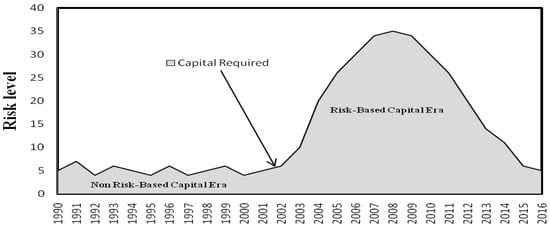 - Shim, Jeungbo. 2010. Capital-based regulation, portfolio risk and capital determination: Empirical evidence from the US property–liability insurers. Journal of Banking and Finance 34: 2450–61. [Google Scholar] [CrossRef]