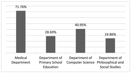 Having presented the findings in relation to the University of Crete, we then present the composition of these university departments by father’s education level for the students who first enrolled in these departments in the University of Patras in the academic year 2014–2015 (Figure 3).