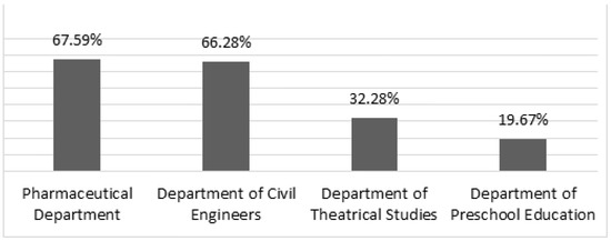 From the University of Patras, we examined the Pharmaceutical Department, the Department of Civil Engineers, the Department of Theatrical Studies and the Department of Preschool Education. The first two departments have more demanding admission criteria, so applicants wishing to attend them need to have high performance in the university entrance examinations. By contrast, the Department of Theatrical Studies and the Department of Preschool Education have less demanding admission criteria, so applicants with lower performance can attend them. In particular, for the academic year 2014–2015, the minimum number of points for entry to the Pharmaceutical Department was 18,265 points, for the Department of Civil Engineers 16,497 points, for the Department of Theatrical Studies 11,659 points and for the Department of Preschool Education 13,650 points.