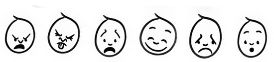 Six emotions from Ekman and Friesen’s work are represented here with images (Ekman et al. 1971). These images were re-validated in a separate pilot study. They represent anger, disgust, fear, happiness, sadness and surprise.