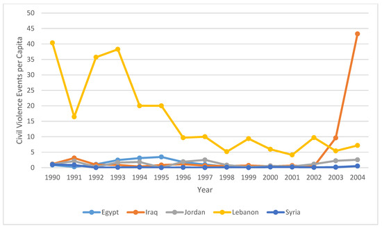 Civil Violence Events per Capita: Fertile Crescent, 1990–2004.