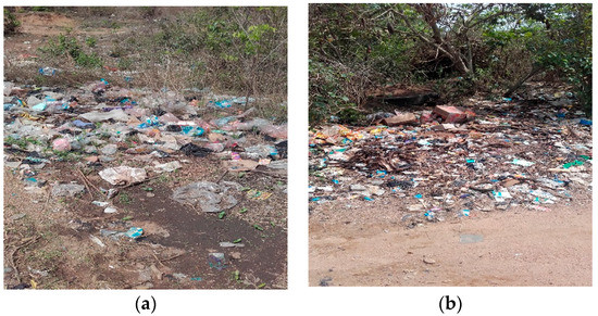 (a) Illegal dumping site showing waste composition; (b) another dumping site depicting waste composition.