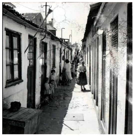 This self-regulation had its origins in the rural background of these communities and on the prominent social role of the woman. Most of these women would spend their day inside the “ilha”, looking after the younger children and keeping up with both domestic and outsourced work (Figure 2). By the middle of the 20th century there were about 14 thousand houses in “ilhas”, lodging 20% of the Portuguese population, a reality that would persist until the last quarter of the century. When the 1974 Revolution led to the affirmation of a democratic regime structured by socialist tendencies, a new public service of assistance to housing construction (Serviço Ambulatório de Apoio Local, SAAL—Local Support Ambulatory Service, 1974–1976) worked directly with inhabitants, organized in cooperatives and associations, to demolish several “ilhas” and transform them immediately into social housing following a model of rows of single-family houses. This operation refused the by then half a century old practice of concentrating new public housing in the periphery, focusing instead on these precariously occupied areas in densified urban contexts. The SAAL experience resulted in a new convergence between the typo-morphological heritage of the industrial city and the shared daily life of the “ilha”, abandoning its instruments of social control.