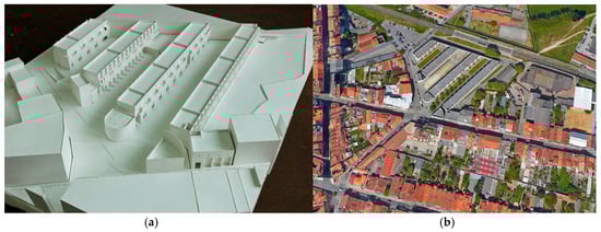 The “ilhas” and the SAAL estates were types of housing installed in the consolidated city. Contradicting the housing policies of the central administration, in 1936 the City Council built the first public collective housing estate in Portugal in the Sao Victor area, to the West of the historic town, the Rua Duque de Saldanha Block (MdH DB a6) (Figure 3a,b). The analysis of this specific territory is enriched by the historical contradictions it reveals in the political and economic status quo and in the kinds of segregation it promoted. On one hand, one still finds today a considerable quantity of “ilhas” generated in this part of the city close to important 19th century industrial areas but devalued by the presence of a cemetery to the East and of the train tracks to the South; on the other hand, as mentioned above, in the 1930s the City Council’s technical services developed the Rua Duque de Saldanha Block to house families evicted from “ilhas” to be demolished, focusing on supplying as much housing as possible in centrally located vacant lots to avoid peripheral areas where infrastructures such as sanitation, water supply and public transport were scarce.