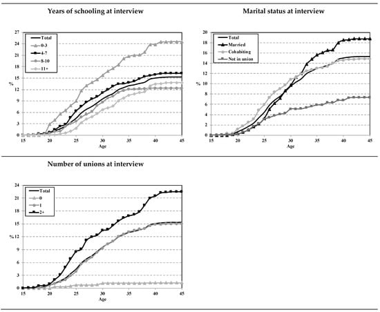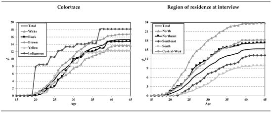 These findings may provide evidence that women with the highest percentages of more than one pregnancy in the period (indigenous, black, or brown; residents in the North; 0–3 years of schooling; and at least two unions) also have the highest cumulative sterilization percentages. The only exception that arises is for marital status. Although the highest percentage of more than one pregnancy in the period is for cohabiting women, the highest cumulative sterilization percentages are for married women.