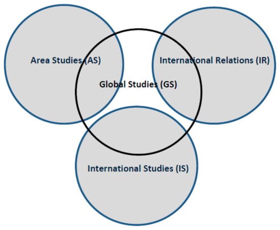 To their credit, the authors made efforts to address the Westernist bias of their field, but having some awareness of bias and successfully transcending it are two different realities. The book’s bibliography covers English titles only, even if some ‘foreign’ classics such as Gramsci and Lyotard made their way into it. We particularly miss a reference to Alexander Chumakov, whose selected writings on globalization were published in an English volume in 2010 with the recommendation of Roland Robertson and William Gay, among others. Yet Chumakov’s philosophical perspective came obviously at odds with the epistemological genealogy delineated by Steger and Wahlrab, who, following Mittelman (2002), construct GS at the intersection of area studies (AS), international studies (IS), and international relations (IR), as in Figure 1.