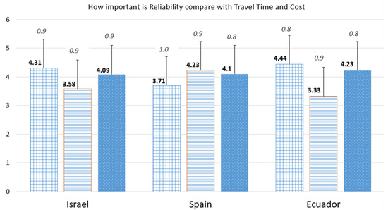 The basic difference found in this research is the concept that each community has of “public transport”. In Ecuador, the bus schedule was not taken into account as the basic hope of the traveler is that the bus will arrive; usually they do not know when the bus is coming. Respondents can react on the reliability in different ways: they can adjust their departure time, their route, or change their mode of transport (Ehreke et al. 2015). In Israel and Spain, travelers usually know the time of departure, so their perception of waiting time is different. We found that the socio-economic characteristics of the sample were different in the three countries. This point led us to consider that a different approach on the perception of reliability only belonged to certain segments of the population. The comparison between the terms of reliability and time were based on a theoretical approach in Section 1 of the survey and in a practical way in Section 3 through the use of SP design questions.