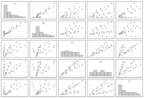 The linearity of the relations between variables of the multifactor linear model of joint value created in the maritime industry was proven and is presented in the form of a matrix of scattering diagrams in Figure 1.
