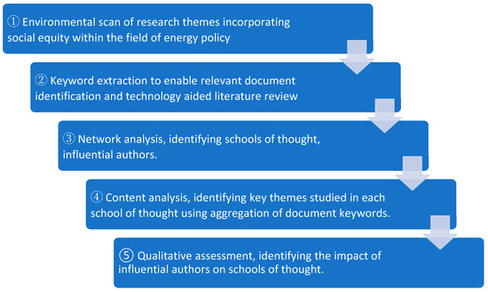 Building from this background in climate change awareness and sustainability evaluation, a timeline begins to emerge, with approximate stages identifiable as environmental justice, climate justice, energy justice, and, most recently, the notion of a just transition. Each of these streams of scholarship continue, and there is significant overlap within each. In order to delve deeper into each of these research streams, and to achieve the goals of this study, a technology aided literature review is introduced, using specific keyword combination searches within the Web of Science document search tool. Figure 1 outlines the methodology utilized in this study.