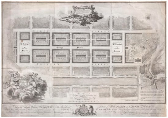 James Craig: Plan of the new streets and squares, intended for his ancient capital of North-Britain, 1768. Source: National Library of Scotland. https://maps.nls.uk/towns/rec/1025.