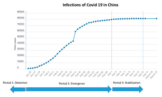 The evolution of COVID-19 infections in China during the investigation period. Source: Based on the World Health Organization (WHO) statistics of COVID-19 infections (2020) and elaborated by the authors.
