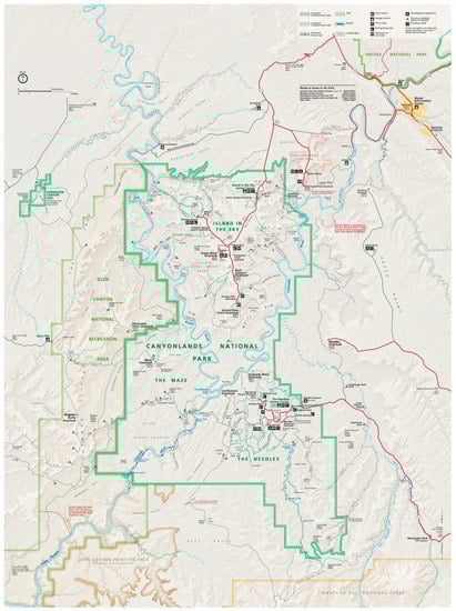 - KellerLynn, Katie. 2005. Canyonlands National Park Geologic Resource Evaluation Report. USA: National Park Service; Geologic Resources Division. Available online: https://digitallibrary.utah.gov/awweb/awarchive?type=file&item=59058 (accessed on 10 June 2020).