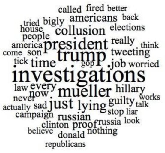 In addition to the fact that the general trend did not illustrate a substantial increase in Pro-Trump sentiment, nor a stable decrease in Anti-Trump sentiment, it cannot be said that Trump’s consistent tweeting about the Russia Investigation has swayed his Twitter audience’s opinion about his participation in colluding with the Russian government. In fact, comments often included information about the ongoing investigation that was not revealed by Trump himself (e.g., updates about Mueller’s investigation and mentions of Trump Junior’s involvement). From this, we deduce that these aforementioned audience members’ opinions are more influenced by external sources (e.g., mass media) than the statements, claims, and arguments expressed in Trump’s ongoing tweets.