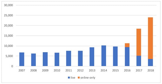 Total number of lots taken to auction (live and online-only) (2007–2018).