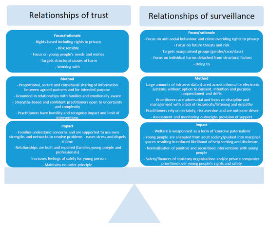 - Penna, Sue. 2005. The Children Act 2004: Child Protection and Social Surveillance. Journal of Social Welfare and Family Law 27: 143–57. [Google Scholar] [CrossRef]