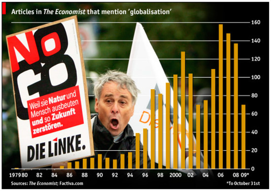 In a meta-review article, The Economist traced its use of the term globalization from 1979, around the start of neoliberalism until 2009, after the Great Recession (The Economist 2009). Similarly, the authors compared many articles in the magazine and found a shift in the meaning of “globalization.” A piece from The Economist from the 1990s reads: