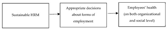 - The aforementioned limitations in the inference process represent, at the same time, a challenge for scientists. Future research projects should be focused on developing a comprehensive, coherent and universal tool that will allow researchers to assess the sustainable HRM implementation level in an organization, including the standardized reporting of non-permanent employment and employees’ health, and making comparisons between organizations. The research process should cover the problem of using flexible forms of employment and their impact on employees’ health conditions. The aggregate data collected within the framework of representative studies could be used to make comparisons between individual countries.